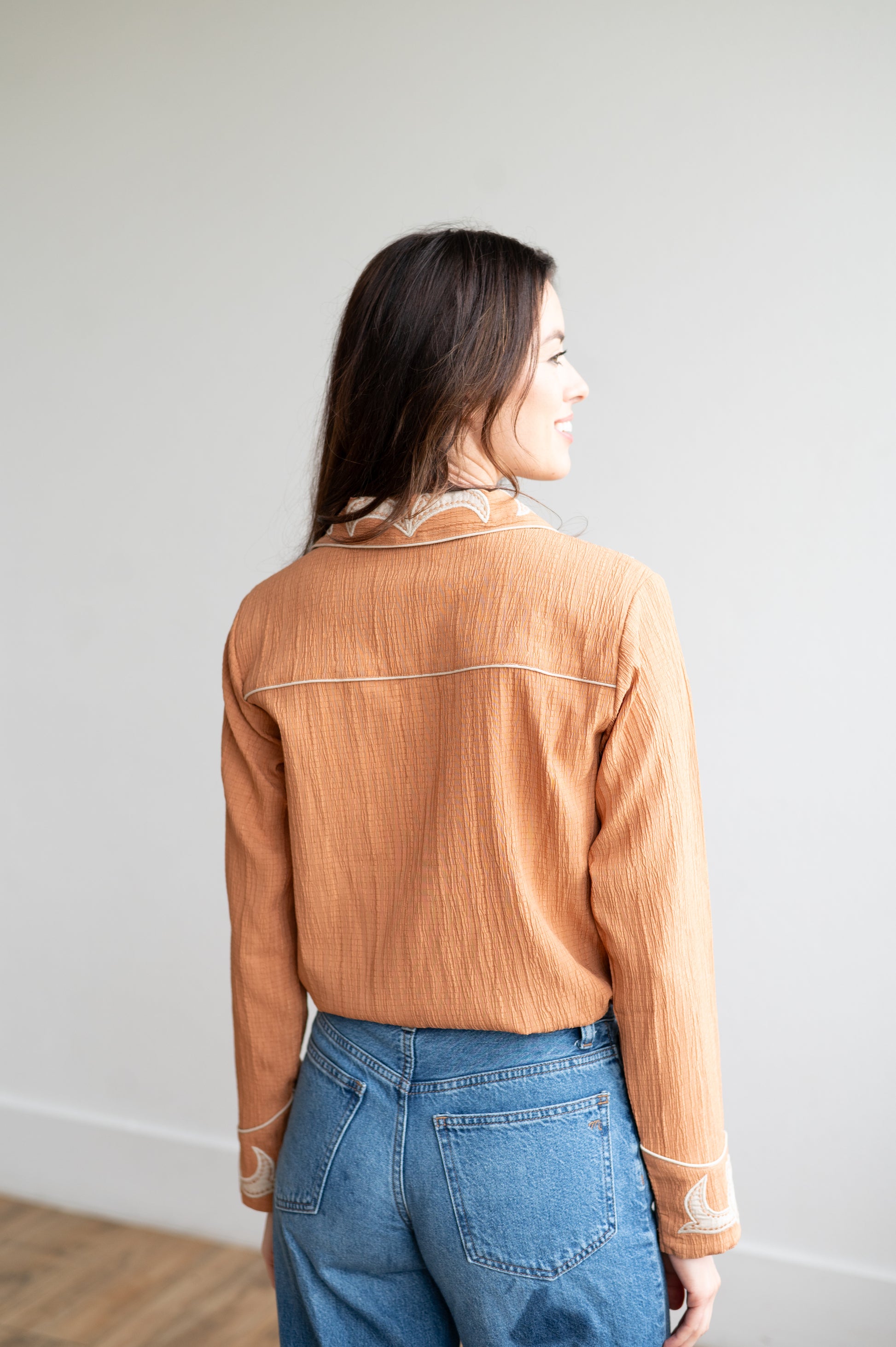 HH2535 APPLIQUE FLORAL RUST LONG SLEEVE
