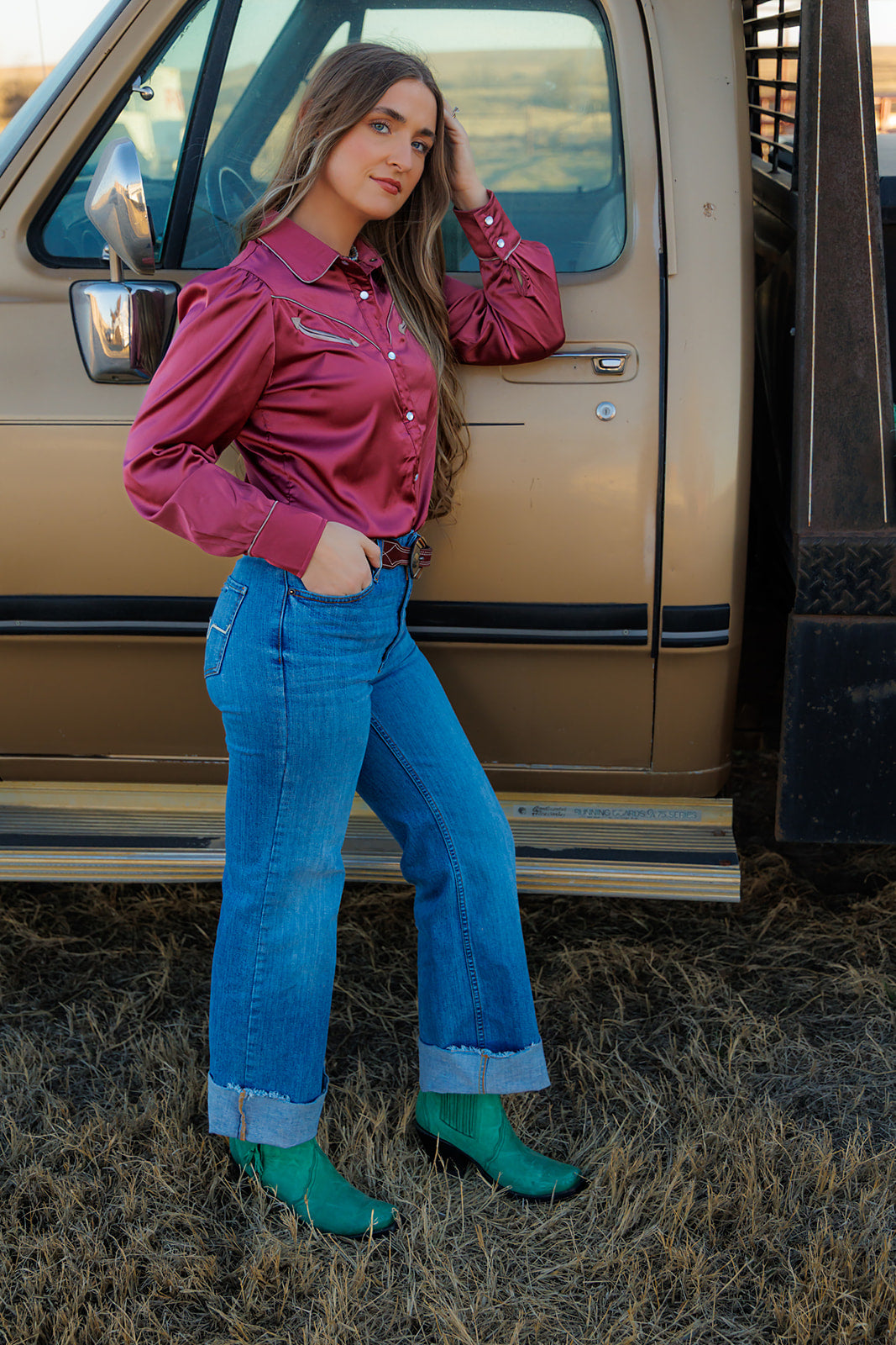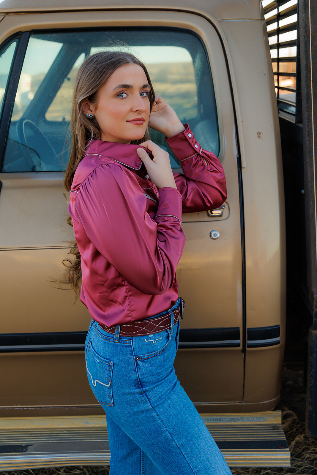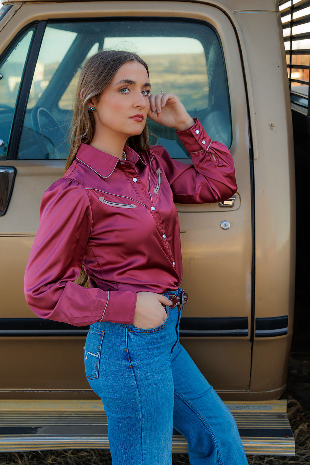 HH2708 SOLID BERRY LS ARROW PEARL SNAP