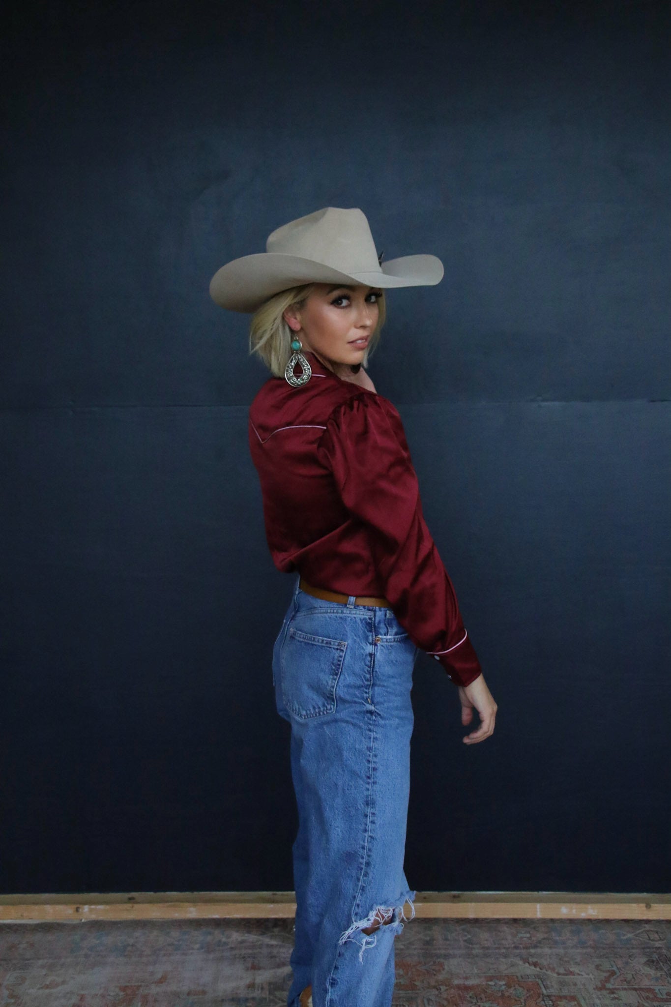 LIME / IVORY LONG SLEEVE PUFF PEARL SNAP TOP