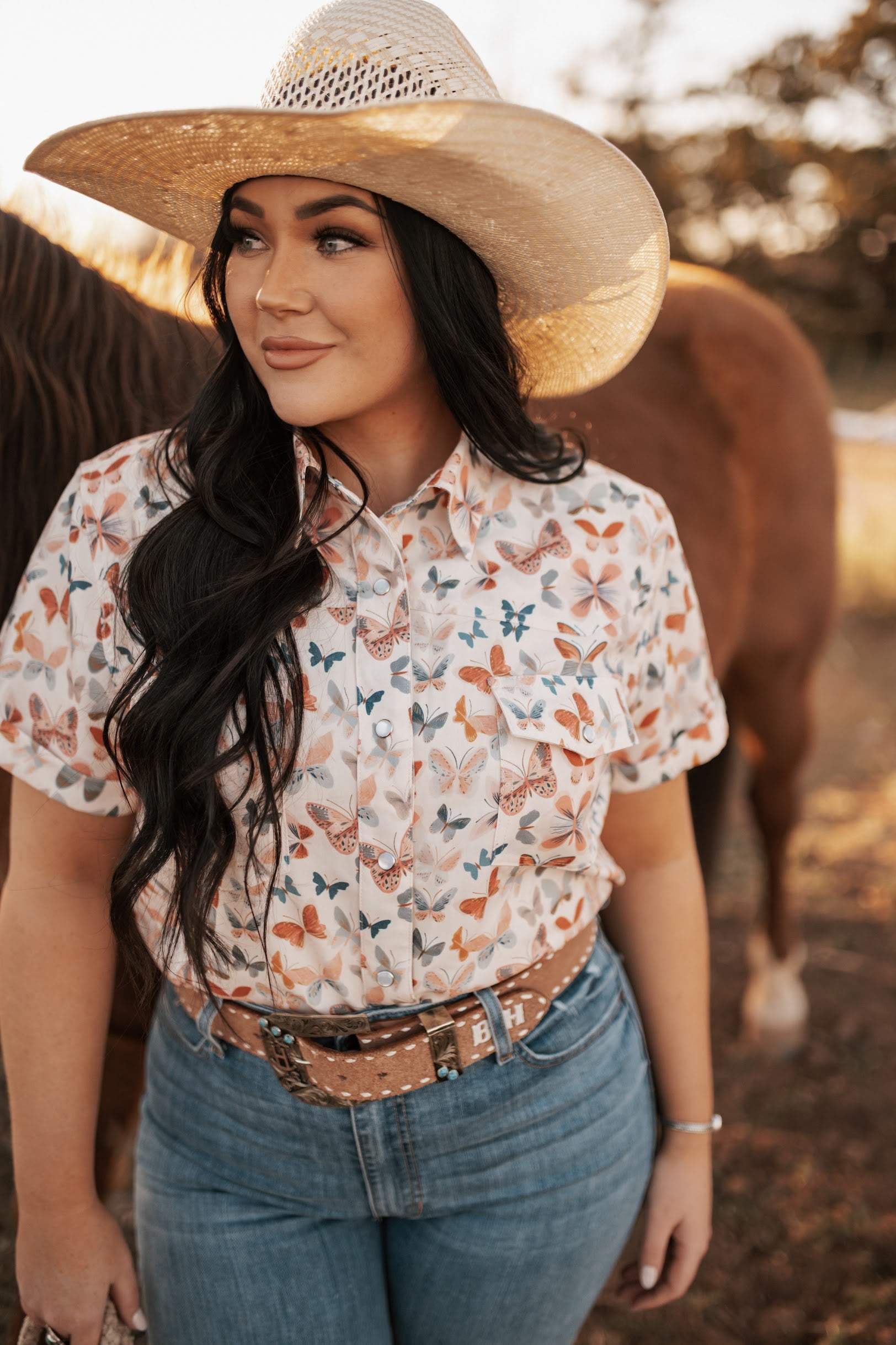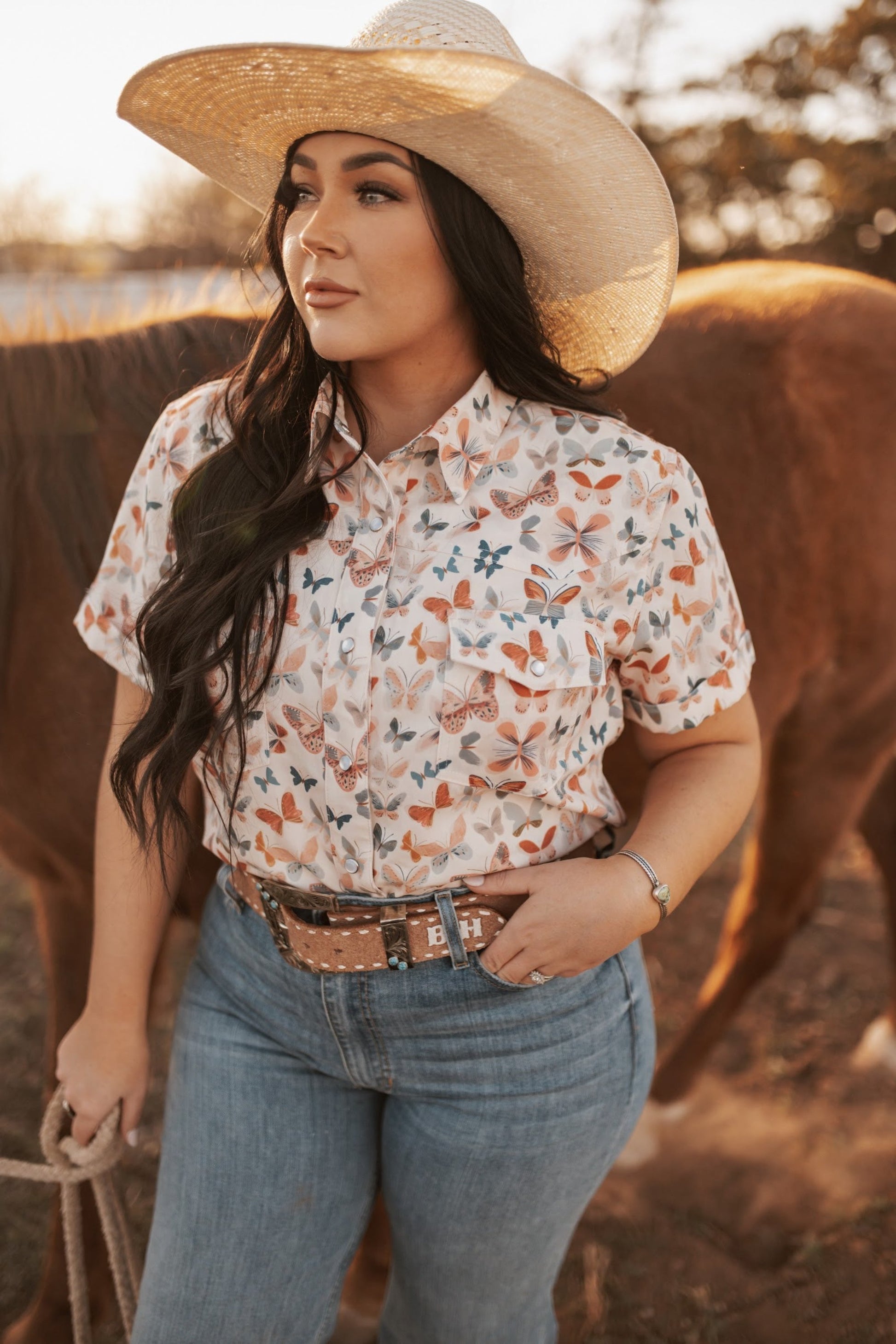 HH10 BUTTERFLY SS CUFFED PEARL SNAP TOP