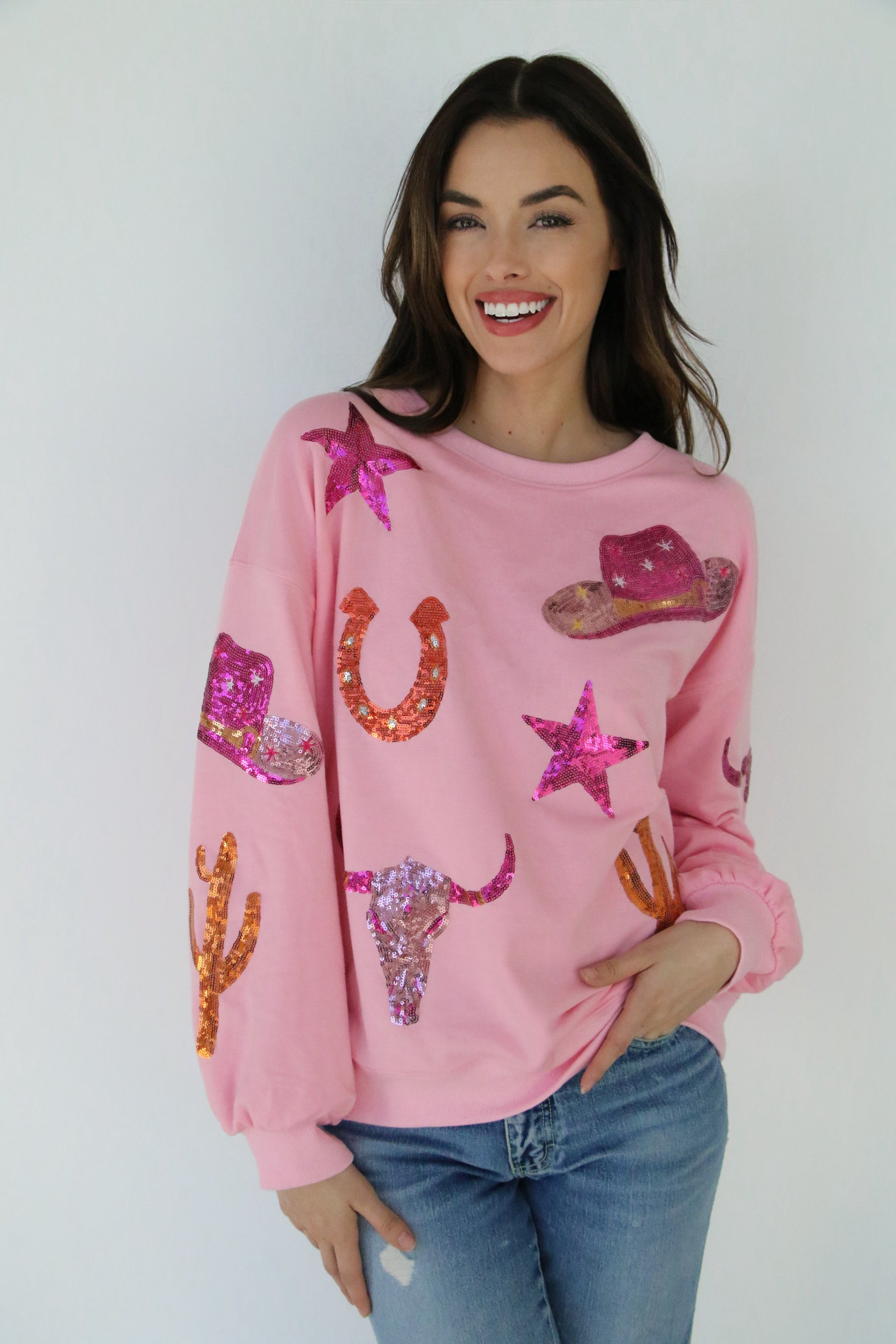 COWBOY THINGS SEQUIN PATCH SWEATSHIRT