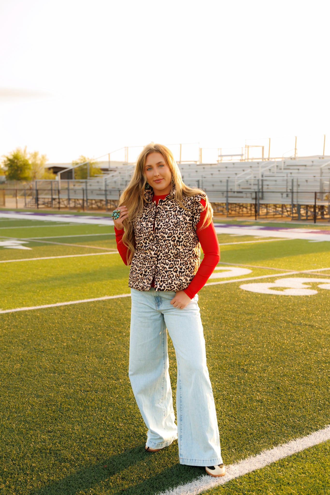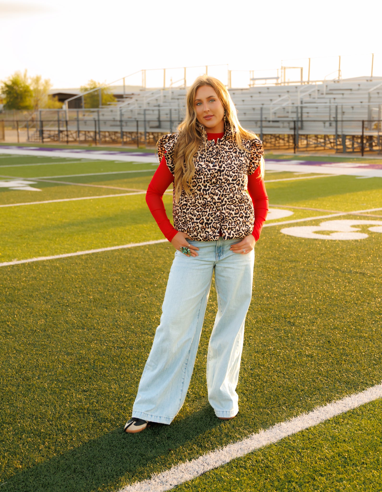 HH1171 LEOPARD RUFFLE PUFFER VEST