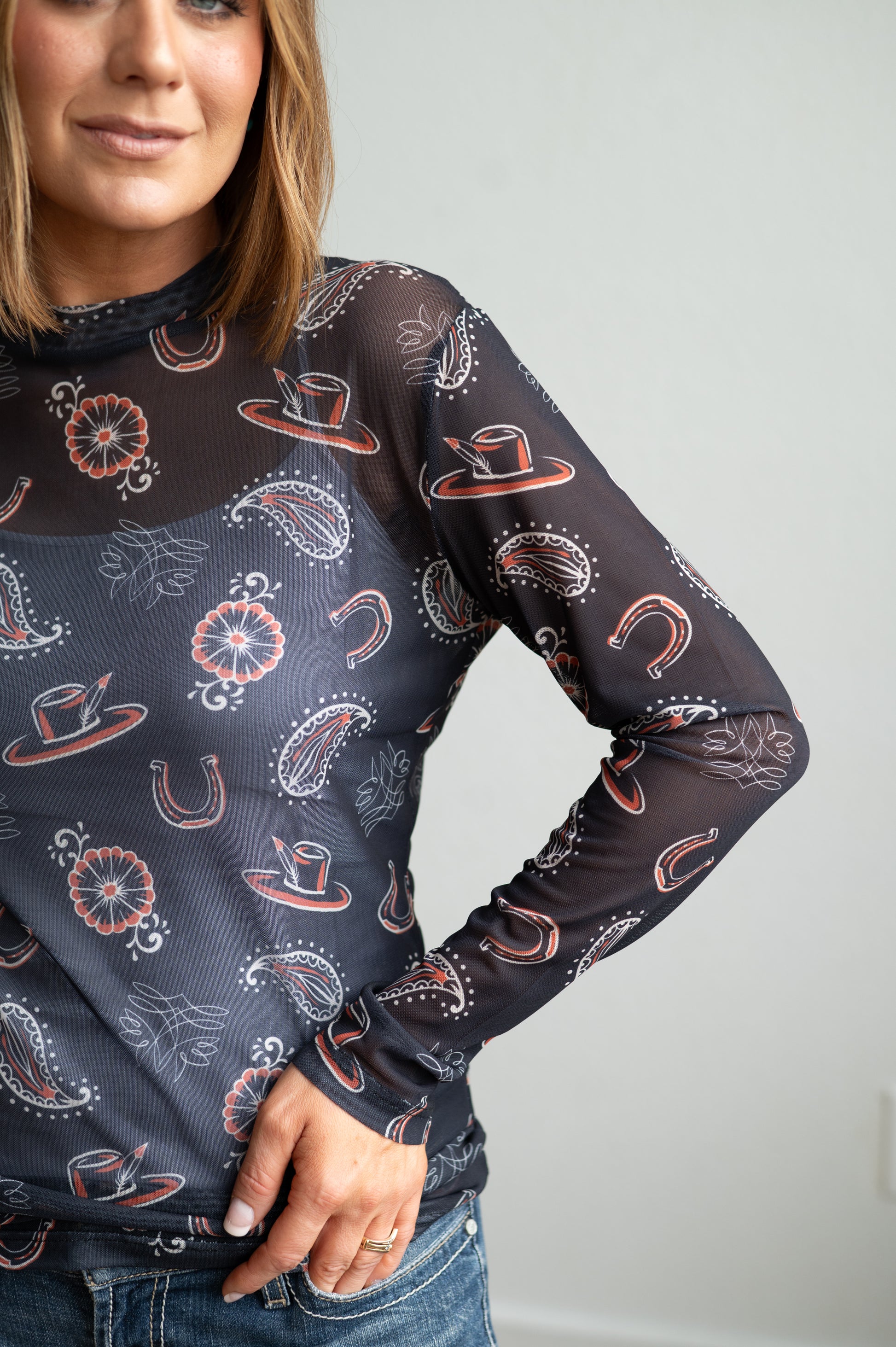 HH1221 BLK FEATHER IN HAT MESH TOP
