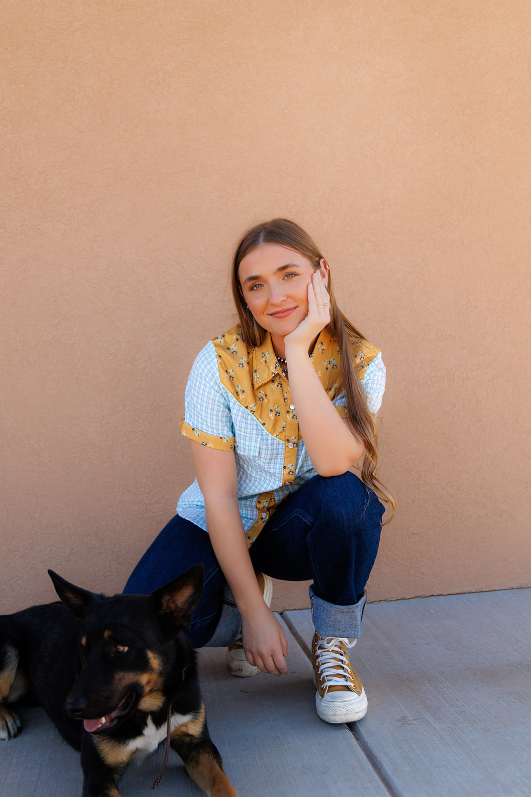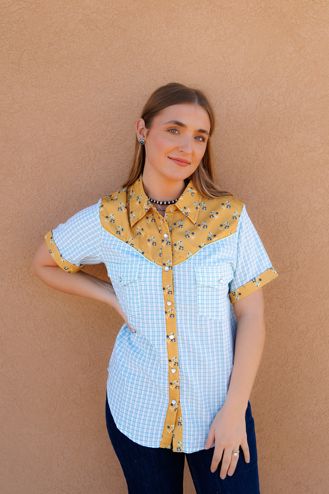 HH2706 MUSTARD FLWRL/MINT GING SHORT SLEEVE