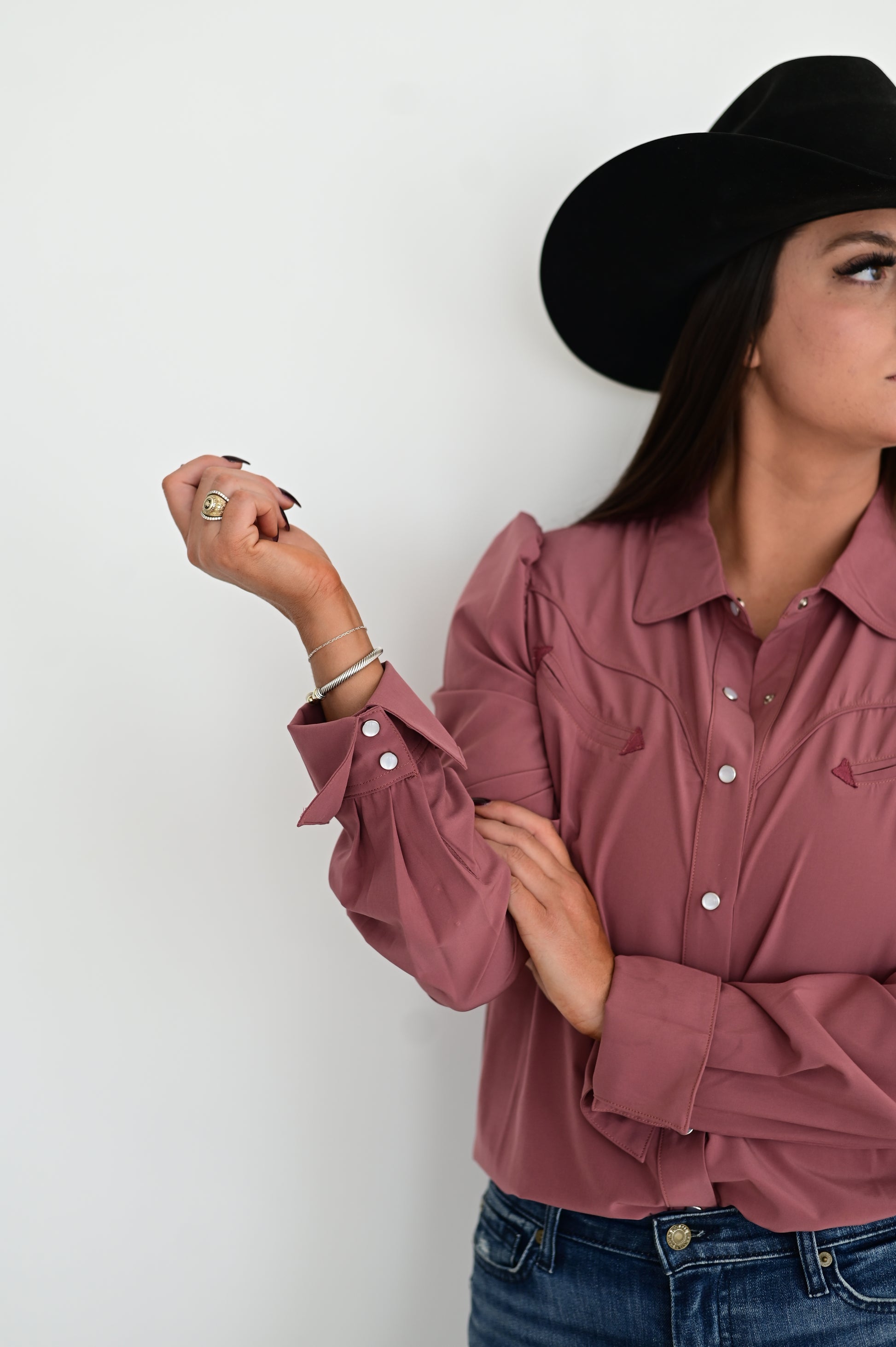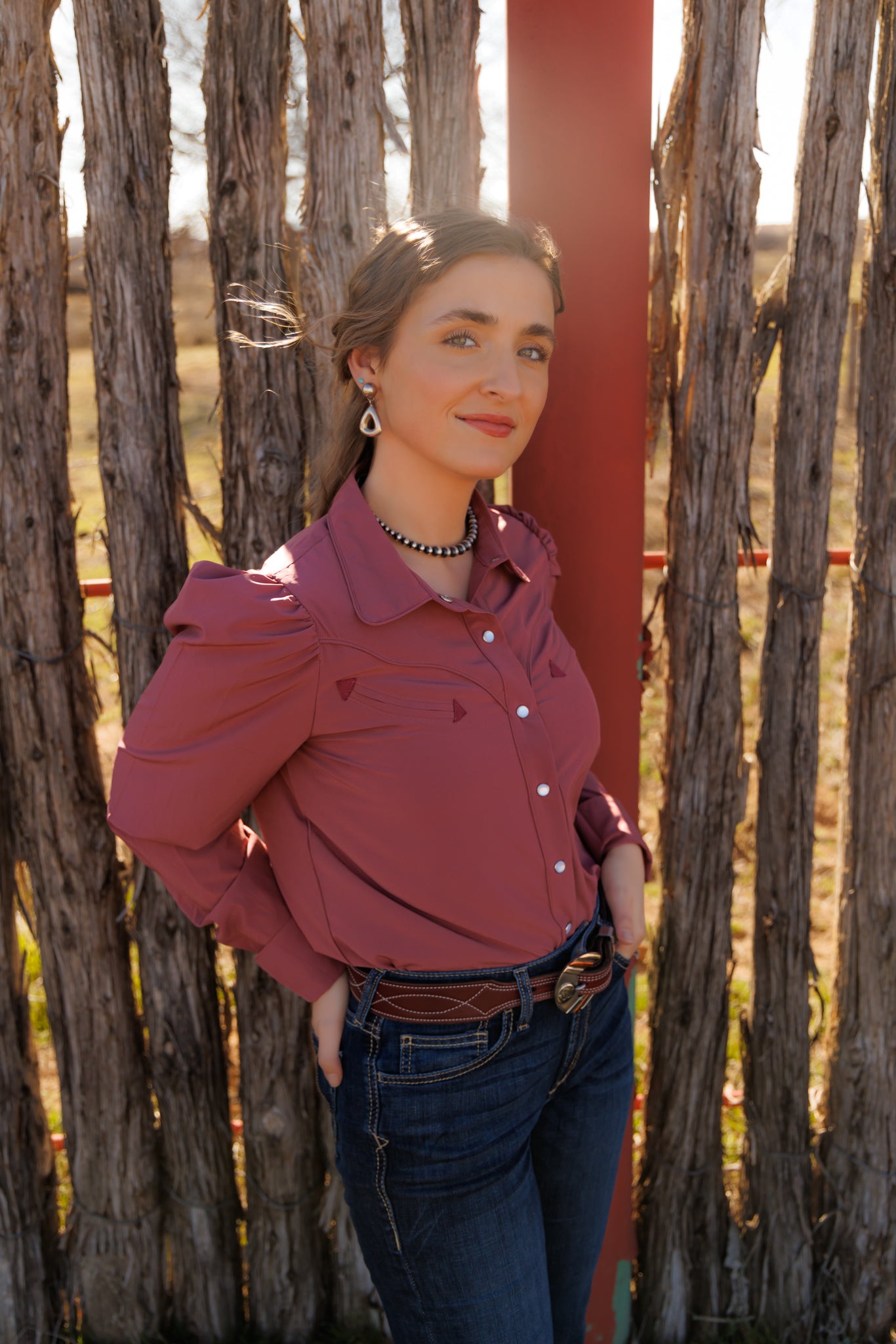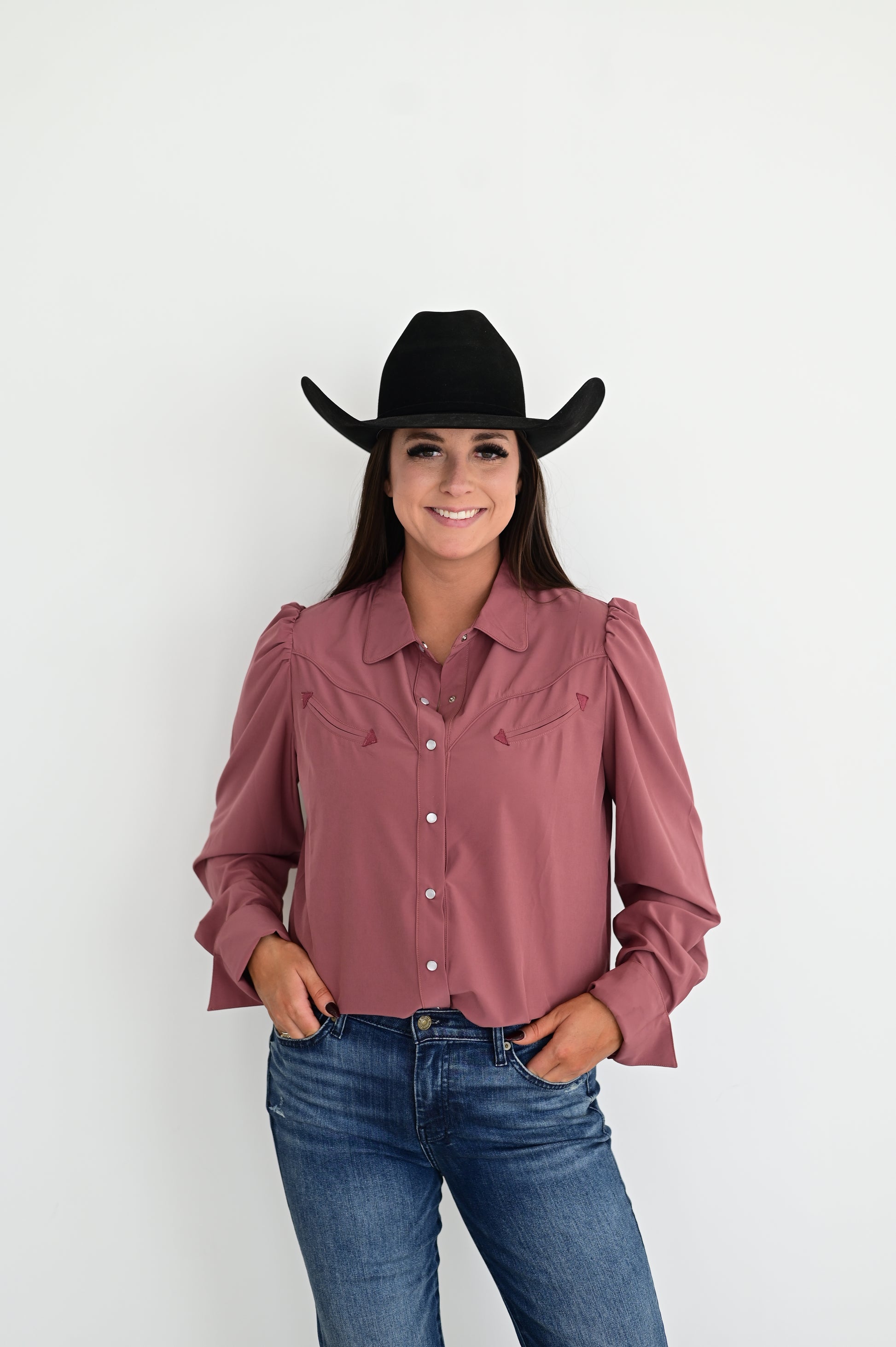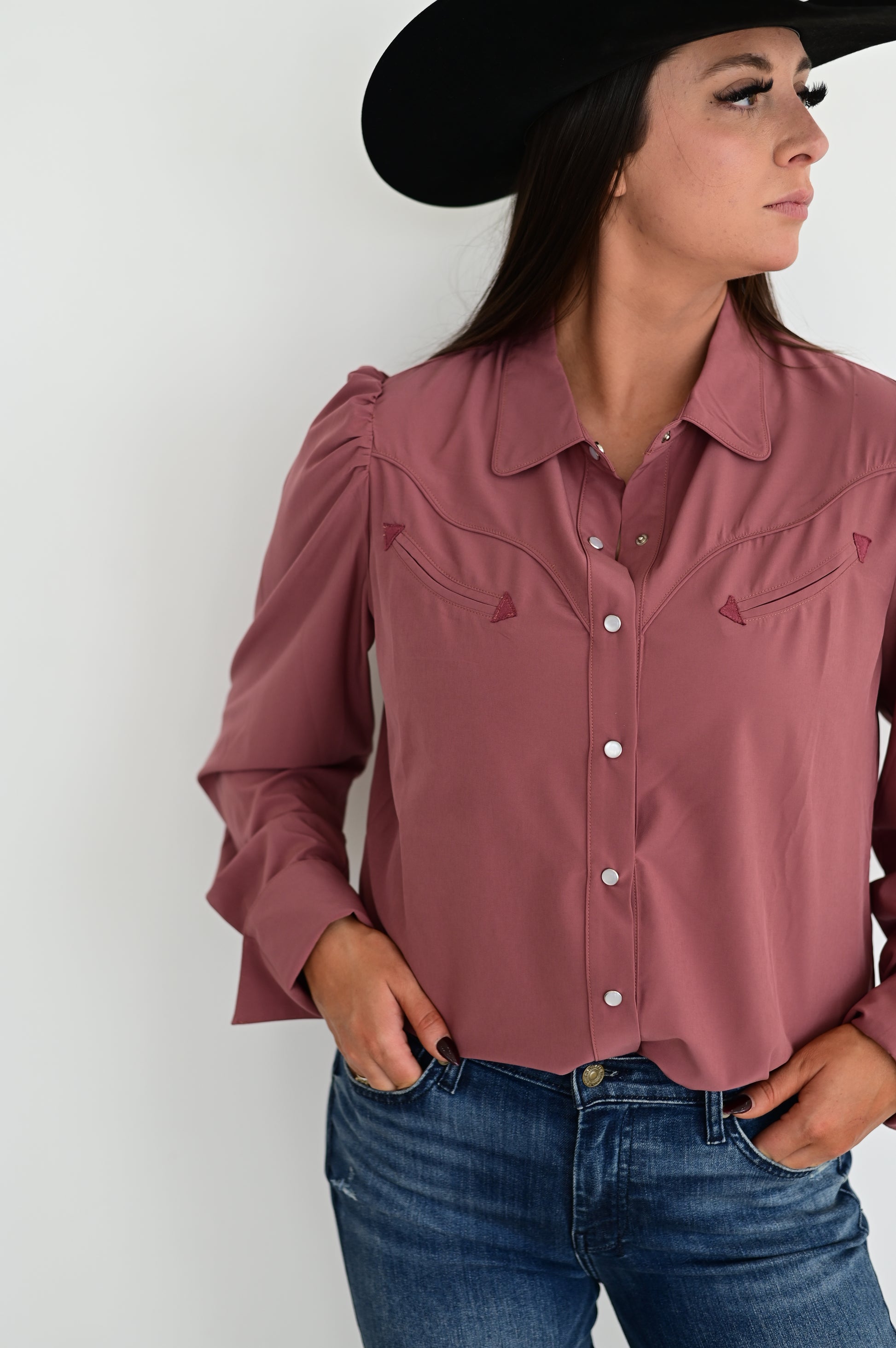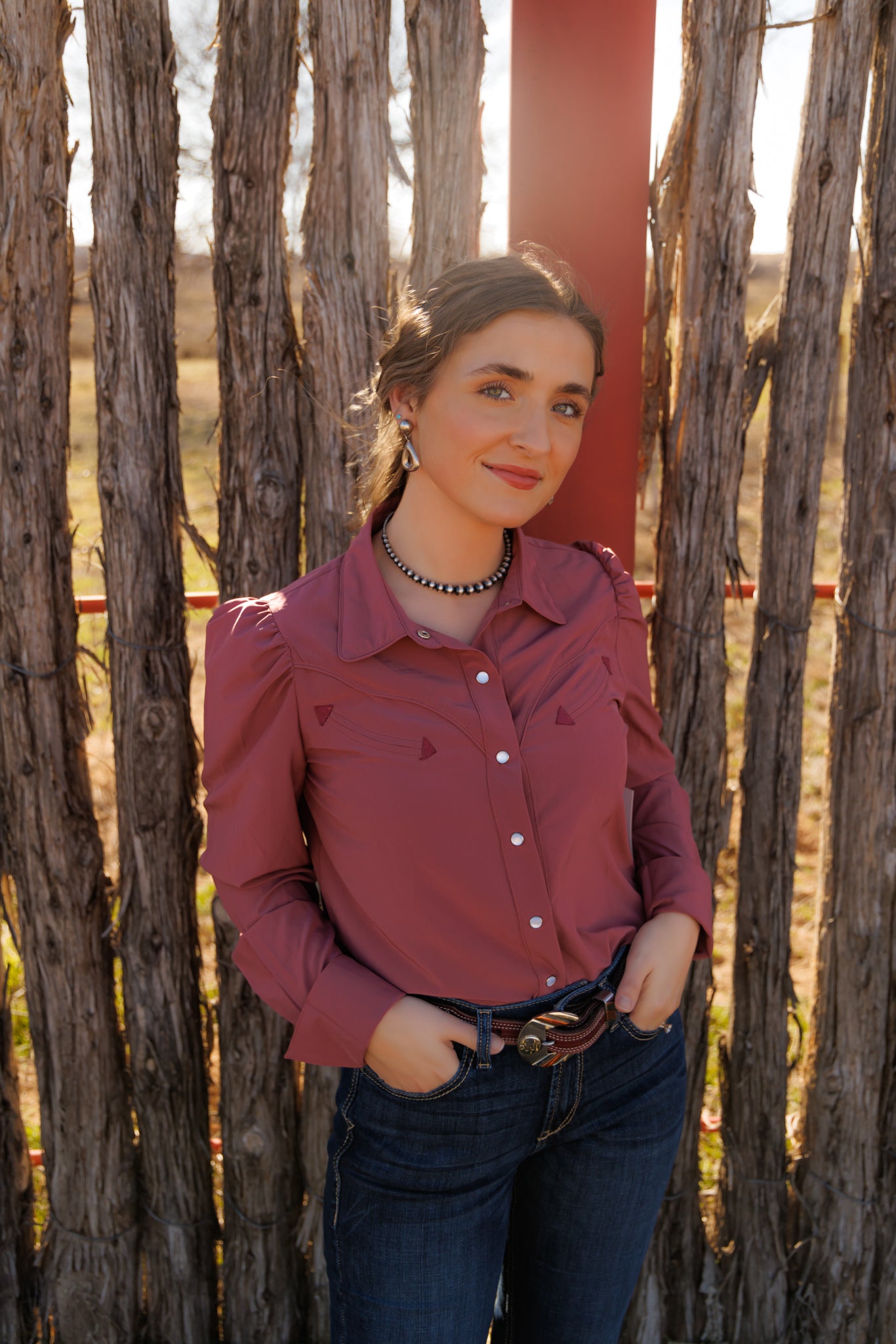 HH2710-WW WINE WATER WICKING PUFF SLEEVE PEARL SNAP