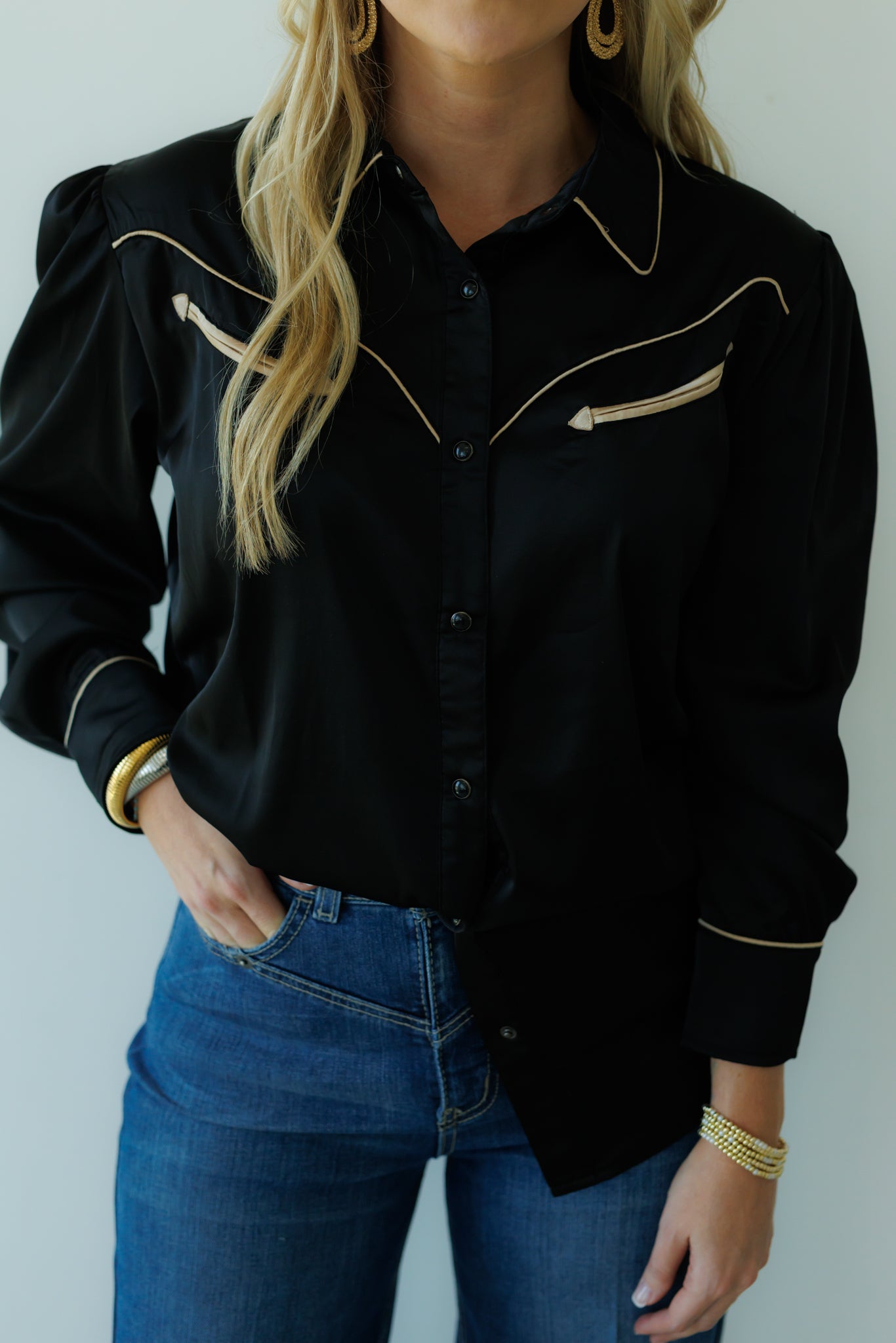Pearl Snap, Black Satin LS HH2708(Pack OF 7)