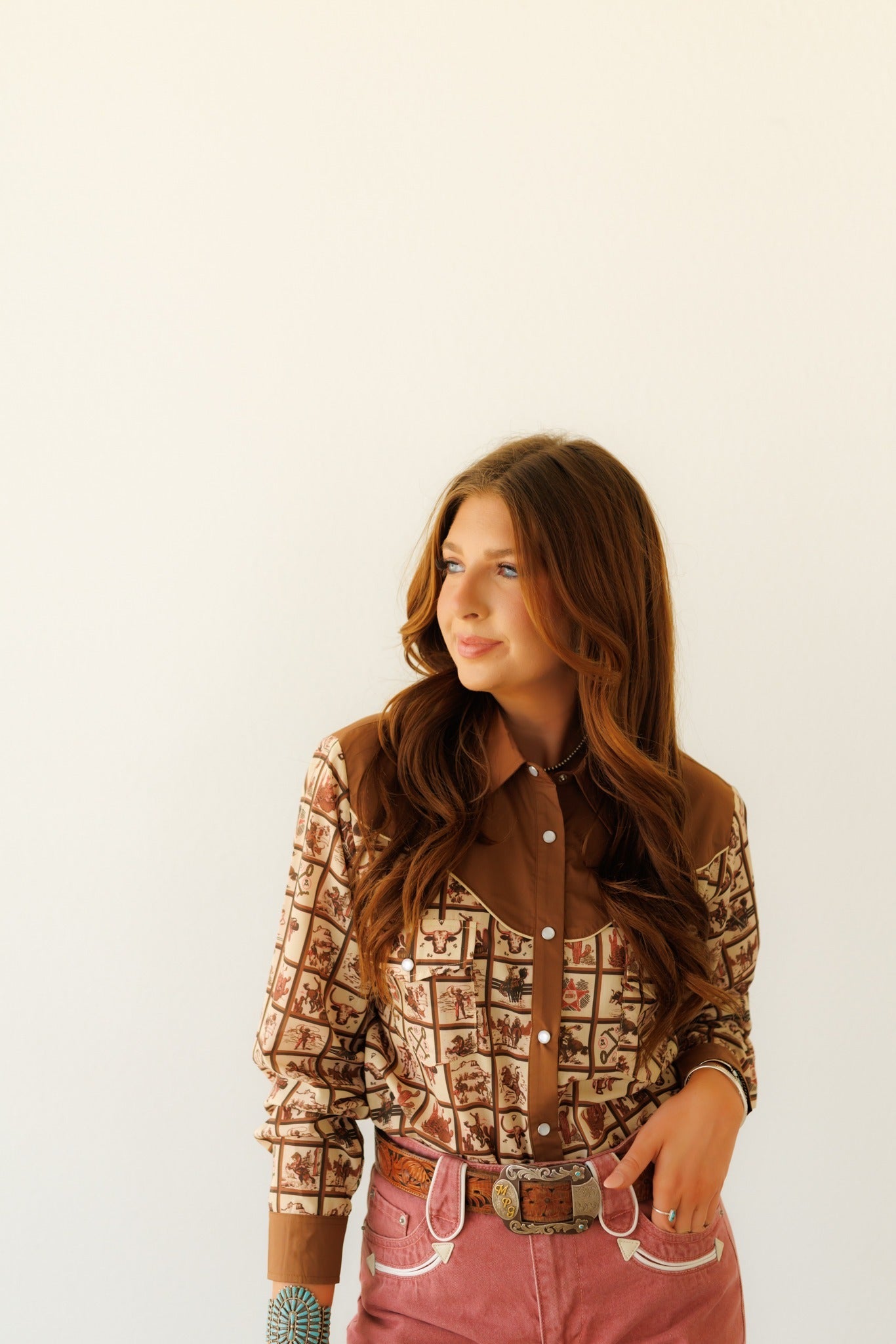 Pearl Snap, Brown Western Sq HH2709 (Pack OF 7)